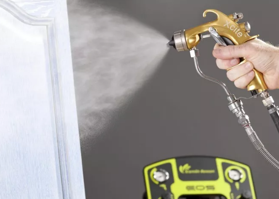 但用噴涂法進行施工也必須掌握一些操作技巧:用潔凈的水將涂料調(diào)至合適噴涂的粘度,以涂-4粘度計測量,合適的粘度一般是20-30秒。如一時沒有粘度計,可用目測法:用棒(鐵棒或木棒)將涂料攪勻后挑起至20厘米高處停下觀察,如漆液在短時間(數(shù)秒鐘)內(nèi)不斷線,則為太稠;如一離桶上沿即斷線則為太稀;要在20厘米高處剛停時,漆液成一直線,瞬間即斷流變成往下滴,這個粘度較為合適。